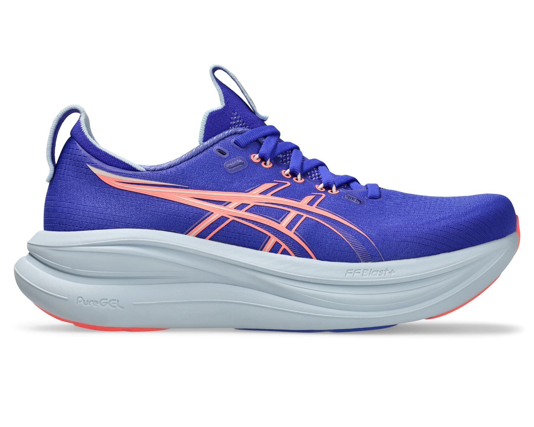 The GEL-NIMBUS® 28 shoe is one of the most comfortable styles in the ASICS® running shoe range. Approximately 20g lighter than the previous version, this shoe continues to offer excellent cushioning to make running longer distances feel smoother. The midsole features a combination of FF BLAST™ PLUS cushioning and PureGEL® technology. These components help create a lightweight and soft cushioning experience that feels like you're landing on clouds. The upper is constructed with an engineered knit material that softly wraps your feet and keeps them comfortable.