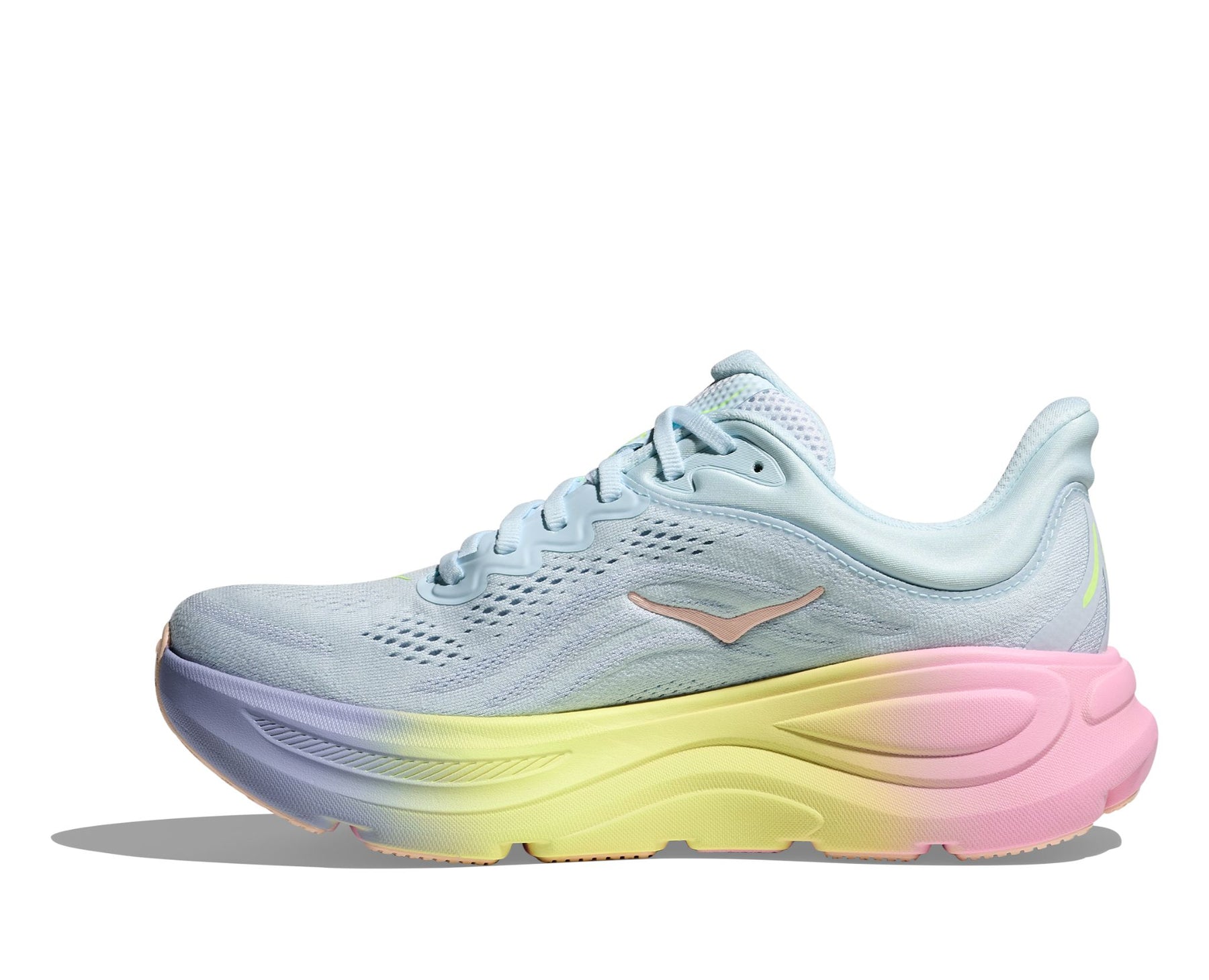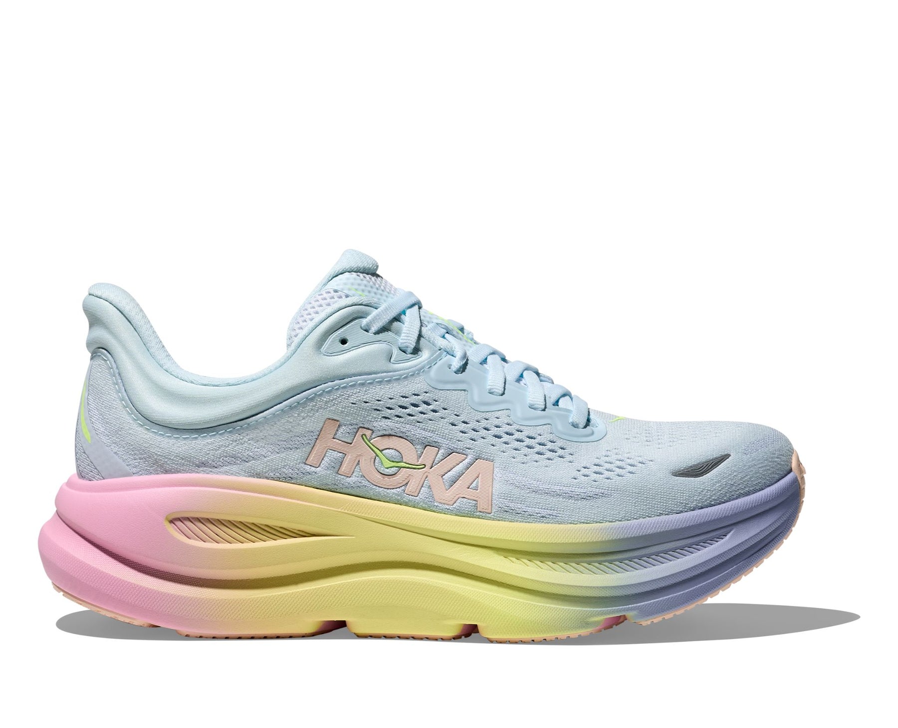 One of the hardest working shoes in the HOKA lineup, the Bondi 9 delivers peak plushness for everyday miles. Overhauled from top to bottom, weƒ??ve increased the stack height and added a new premium foam midsole to deliver that soft, resilient ride thatƒ??s become synonymous with the Bondi. Elevated with a 3D molded collar and structured knit upper with zonal breathability, this ultra-cushioned cult favorite has been finished with Durabrasion rubber to combat high wear zones.